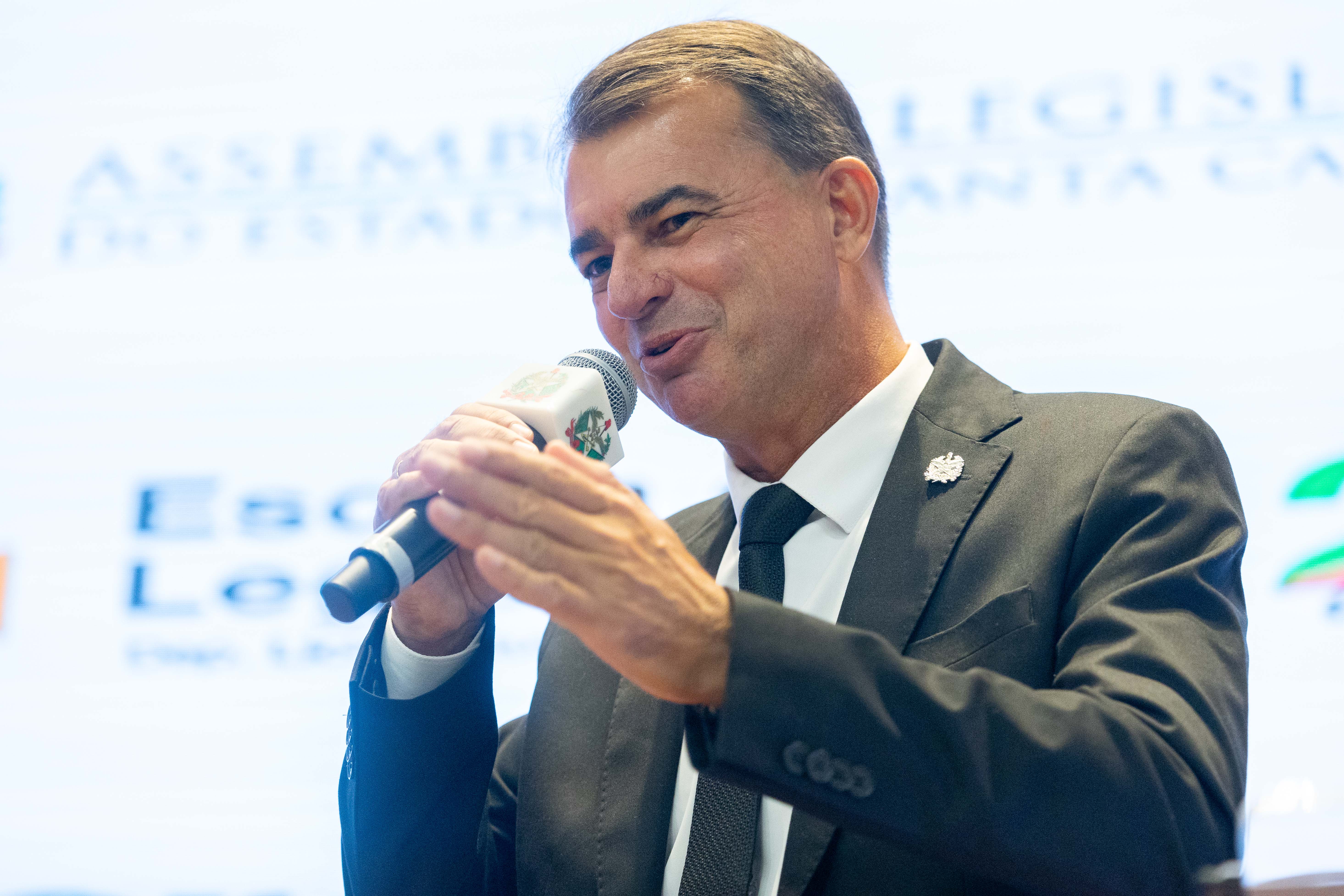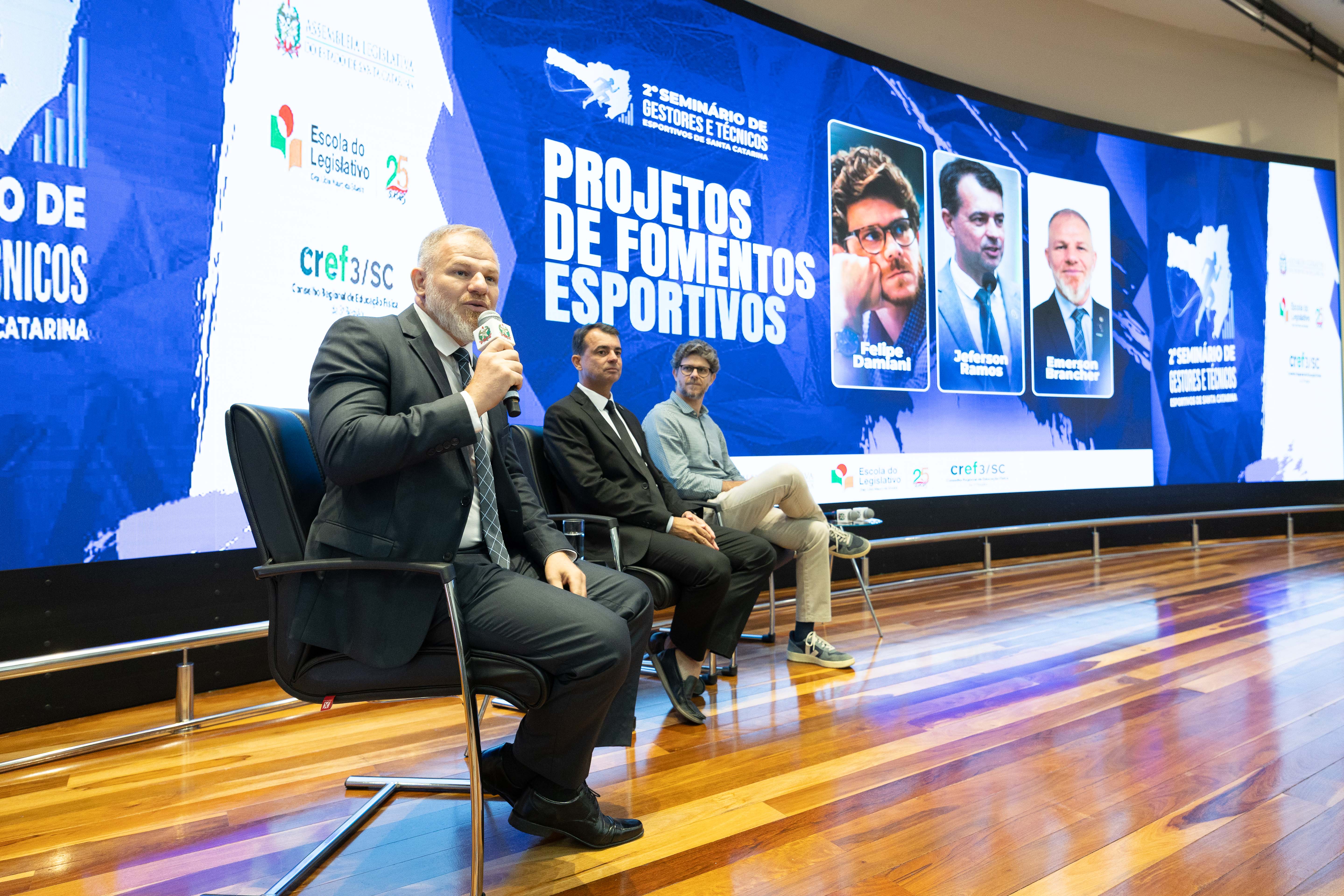 O evento ocorre no Auditório Deputada Antonieta de Barros, no Palácio Barriga Verde, em Florianópolis, reunindo autoridades, especialistas e lideranças do cenário esportivo estadual e nacional.