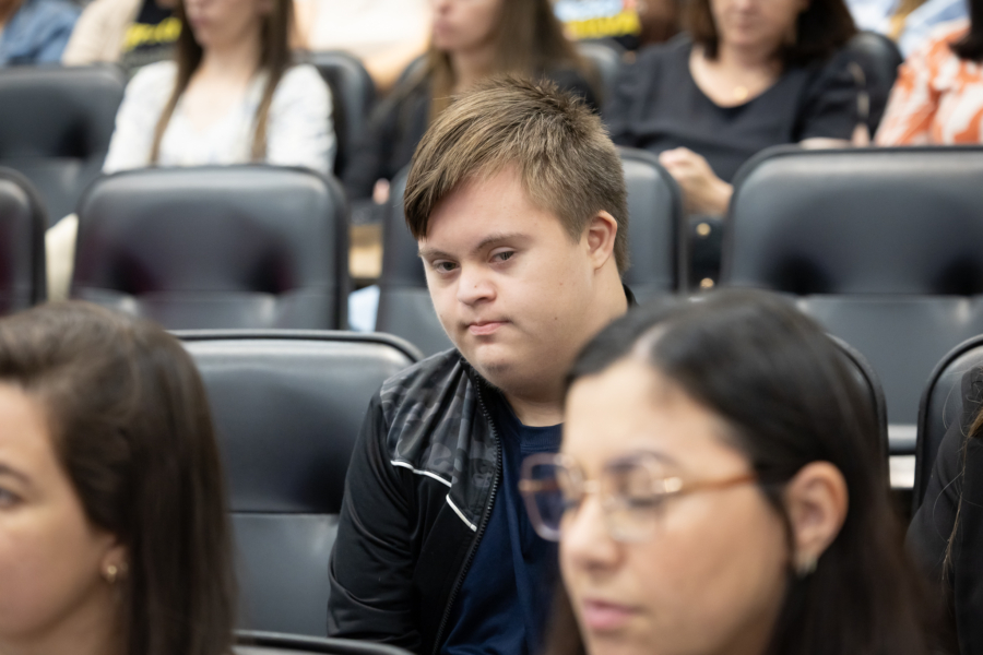 Ao lado do pai, Marcos Meister, Ramon é presença frequente no XI Seminário sobre Síndrome de Down: Construindo Conexões e Superando a Solidão, realizado nesta terça-feira (7), no Auditório Antonieta de Barros, na Assembleia Legislativa de Santa Catarina (Alesc).