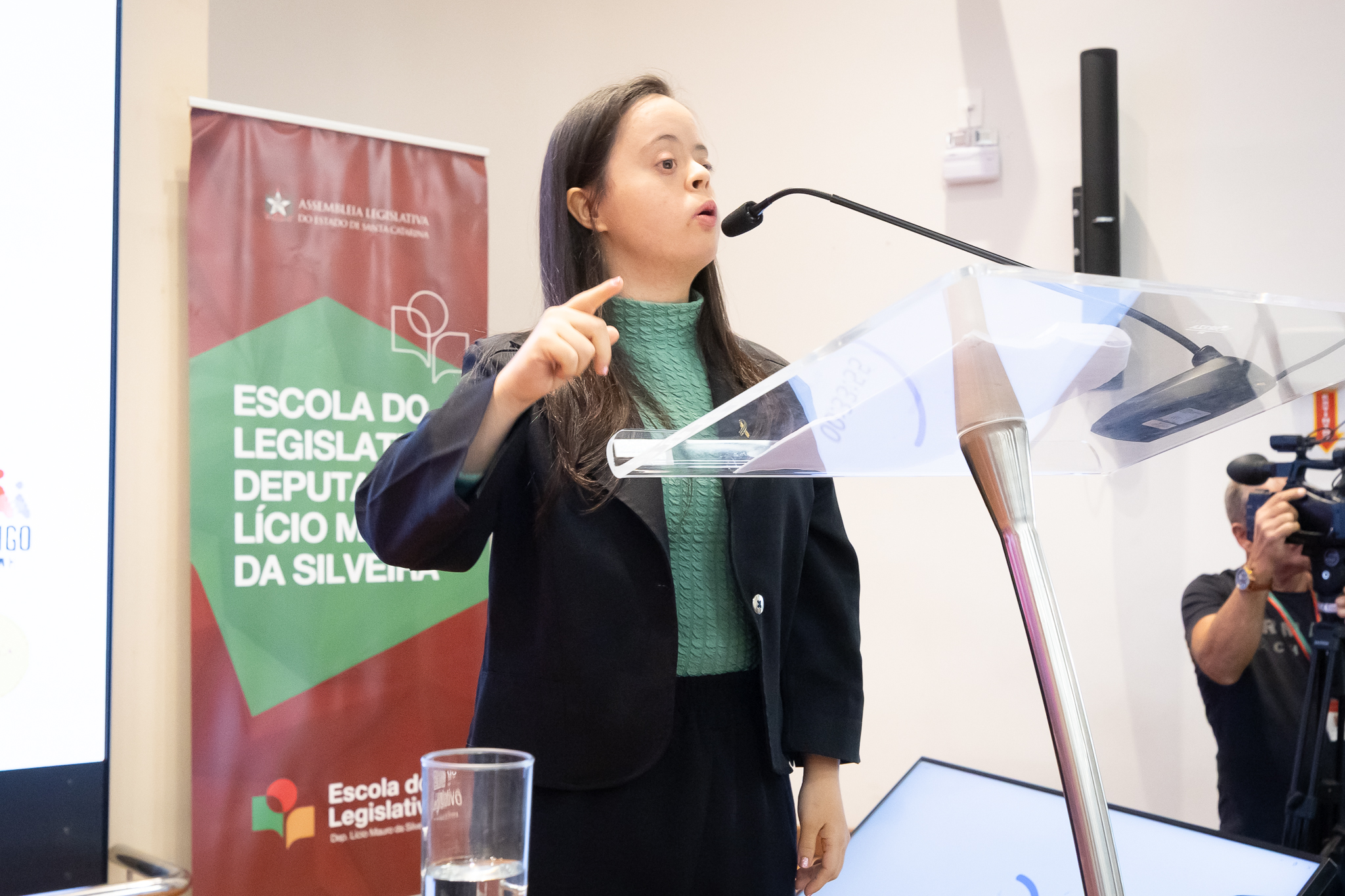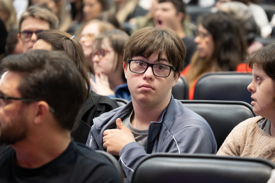 Ao lado do pai, Marcos Meister, Ramon é presença frequente no XI Seminário sobre Síndrome de Down: Construindo Conexões e Superando a Solidão, realizado nesta terça-feira (7), no Auditório Antonieta de Barros, na Assembleia Legislativa de Santa Catarina (Alesc).