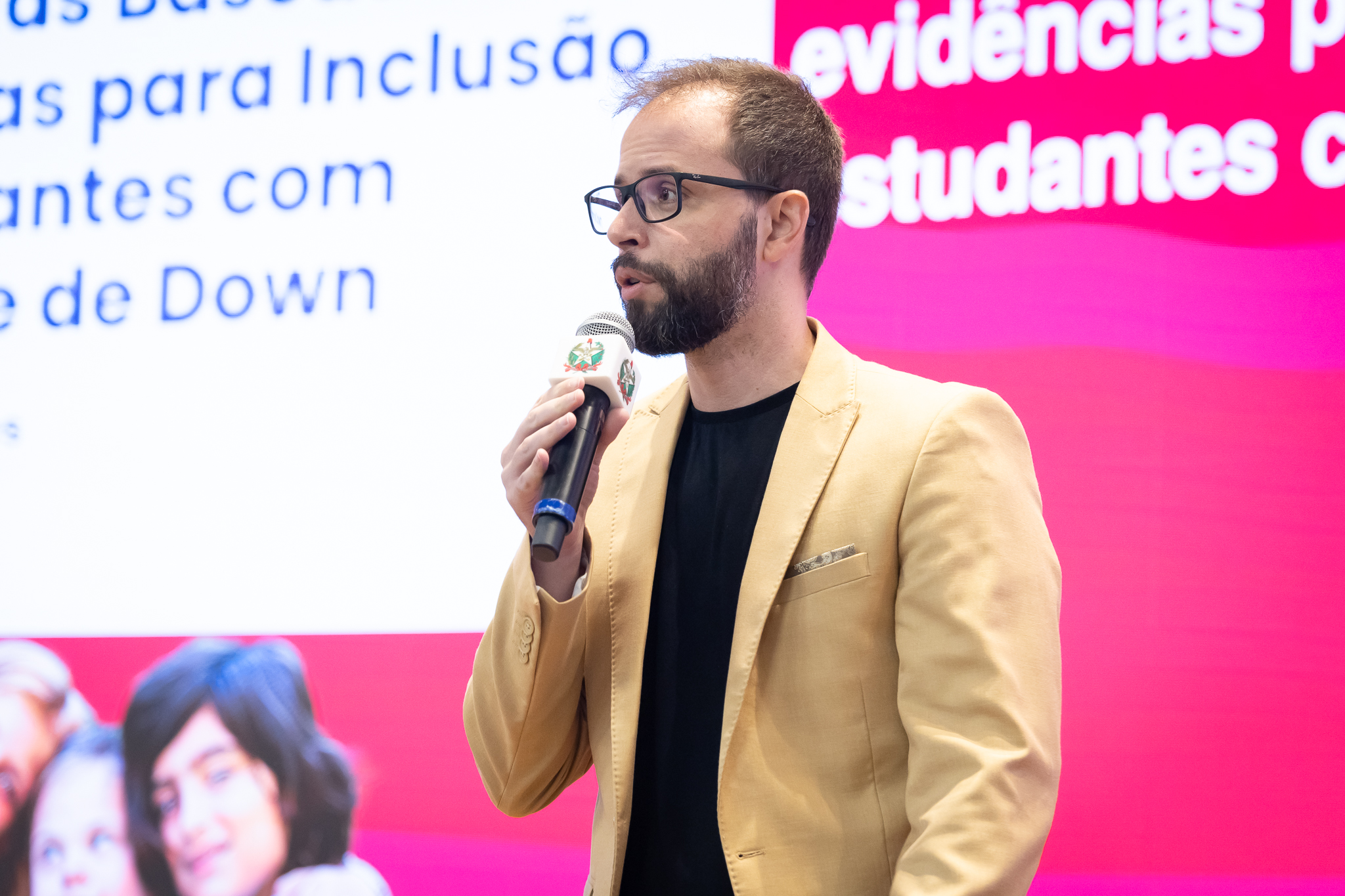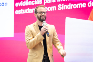 - palestrante Leandro Rodrigues, que conduziu o tema “Estratégias Baseadas em Evidências para a Inclusão de Estudantes com Síndrome de Down”.