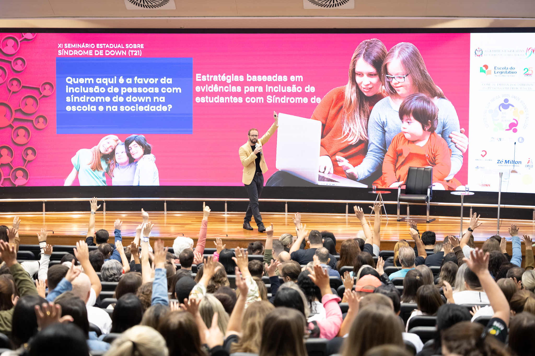 Promovido pela Comissão dos Direitos da Pessoa com Deficiência, com apoio da Escola do Legislativo Lício Mauro da Silveira, o evento reuniu mais de 400 participantes, entre especialistas, representantes das Apaes de todo o estado, familiares e ativistas da causa.